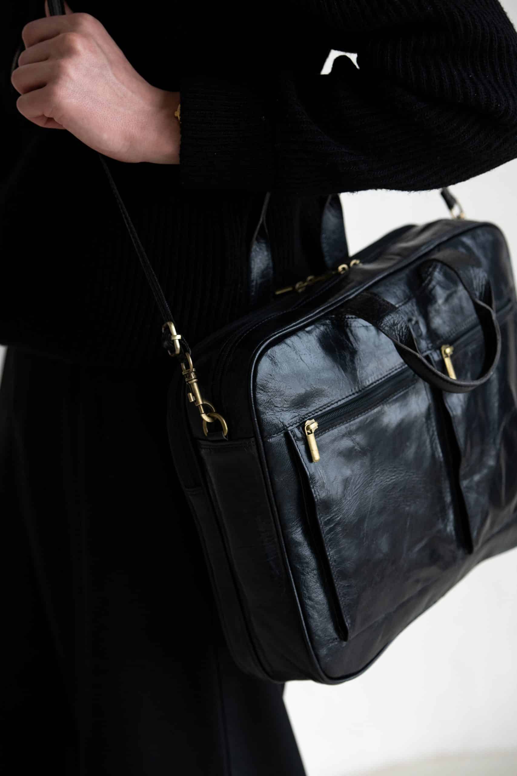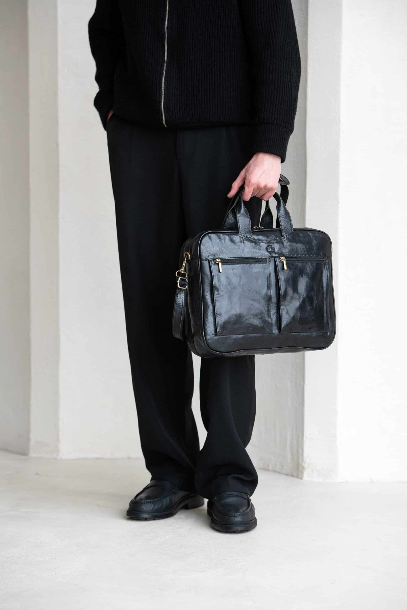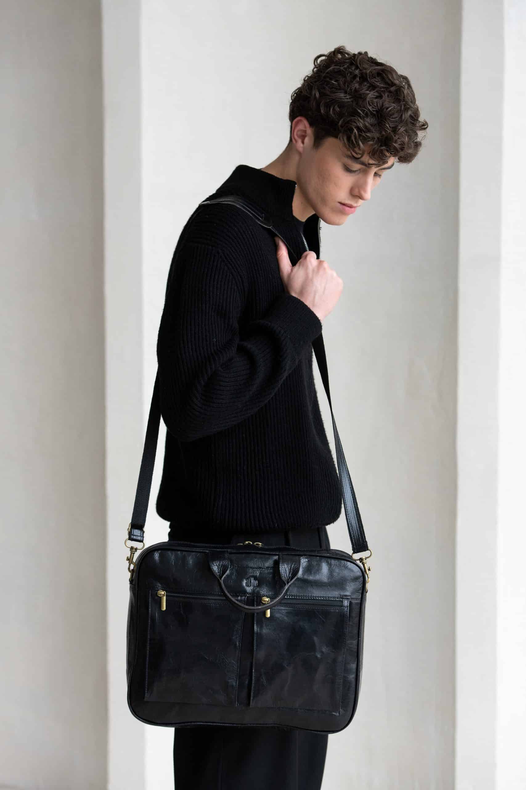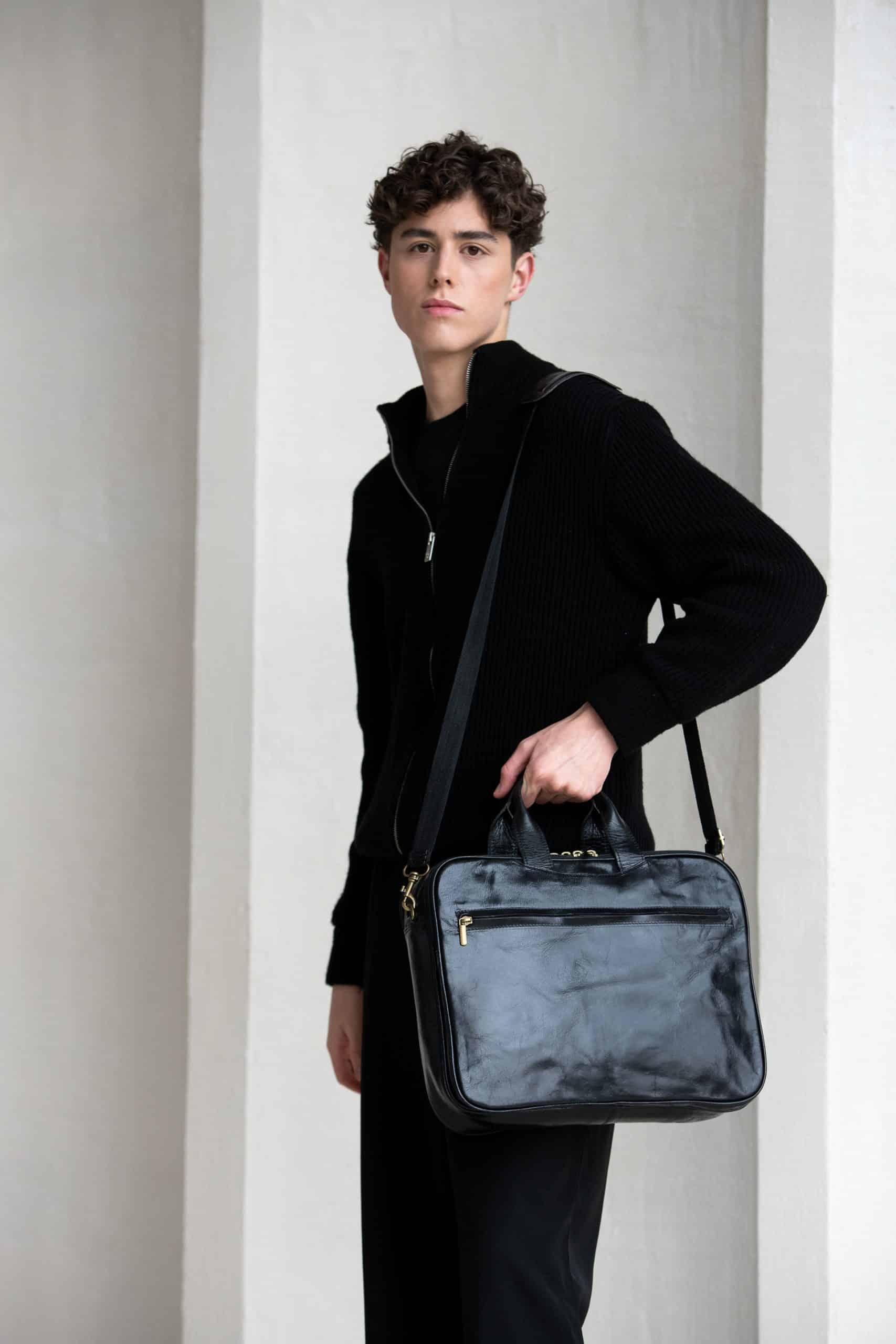 Leather Black Unisex Handbag aChe JAQUE N Handmade