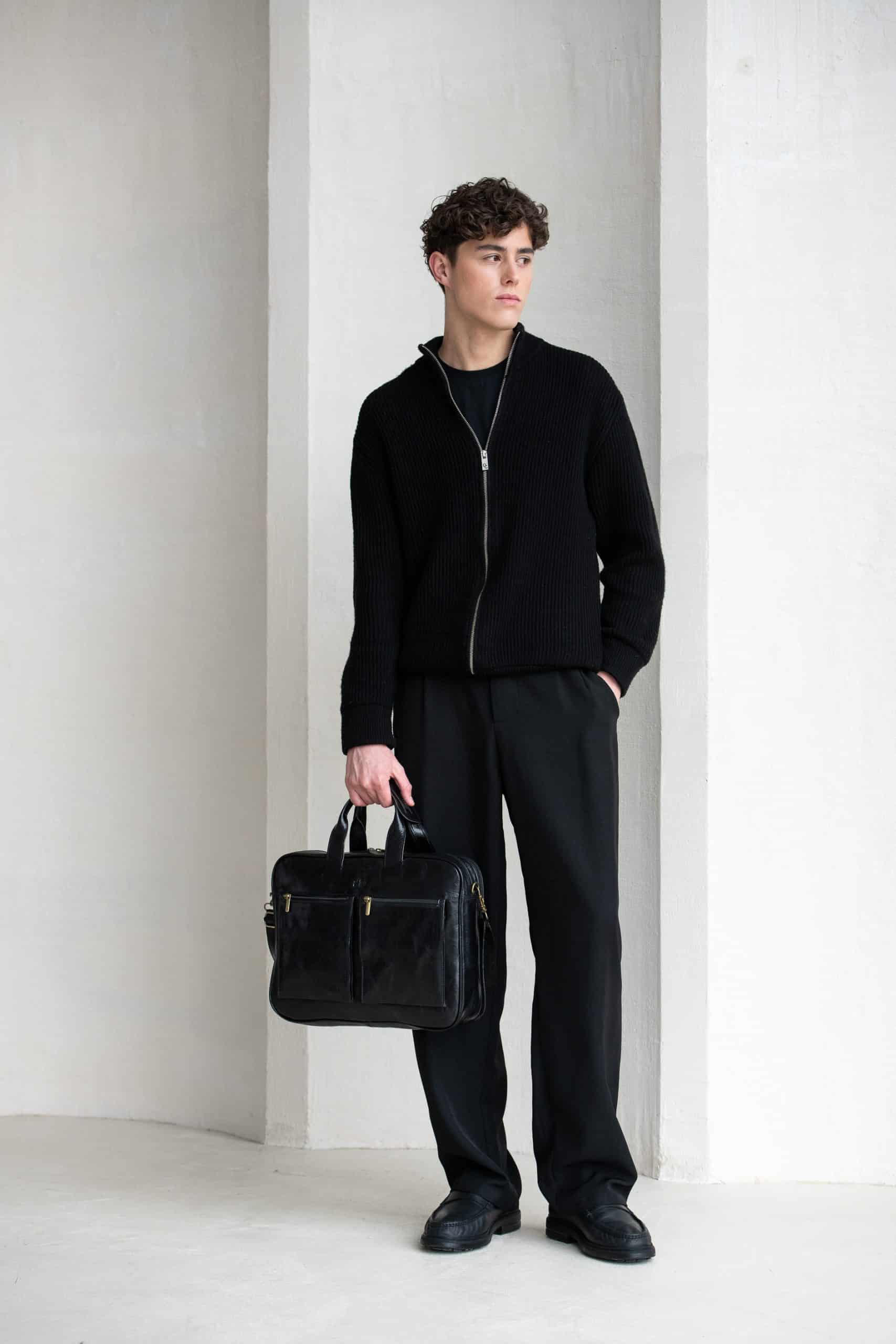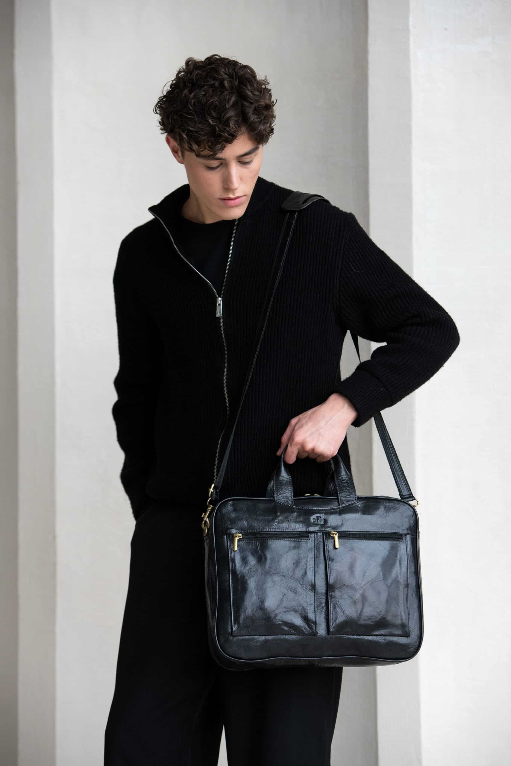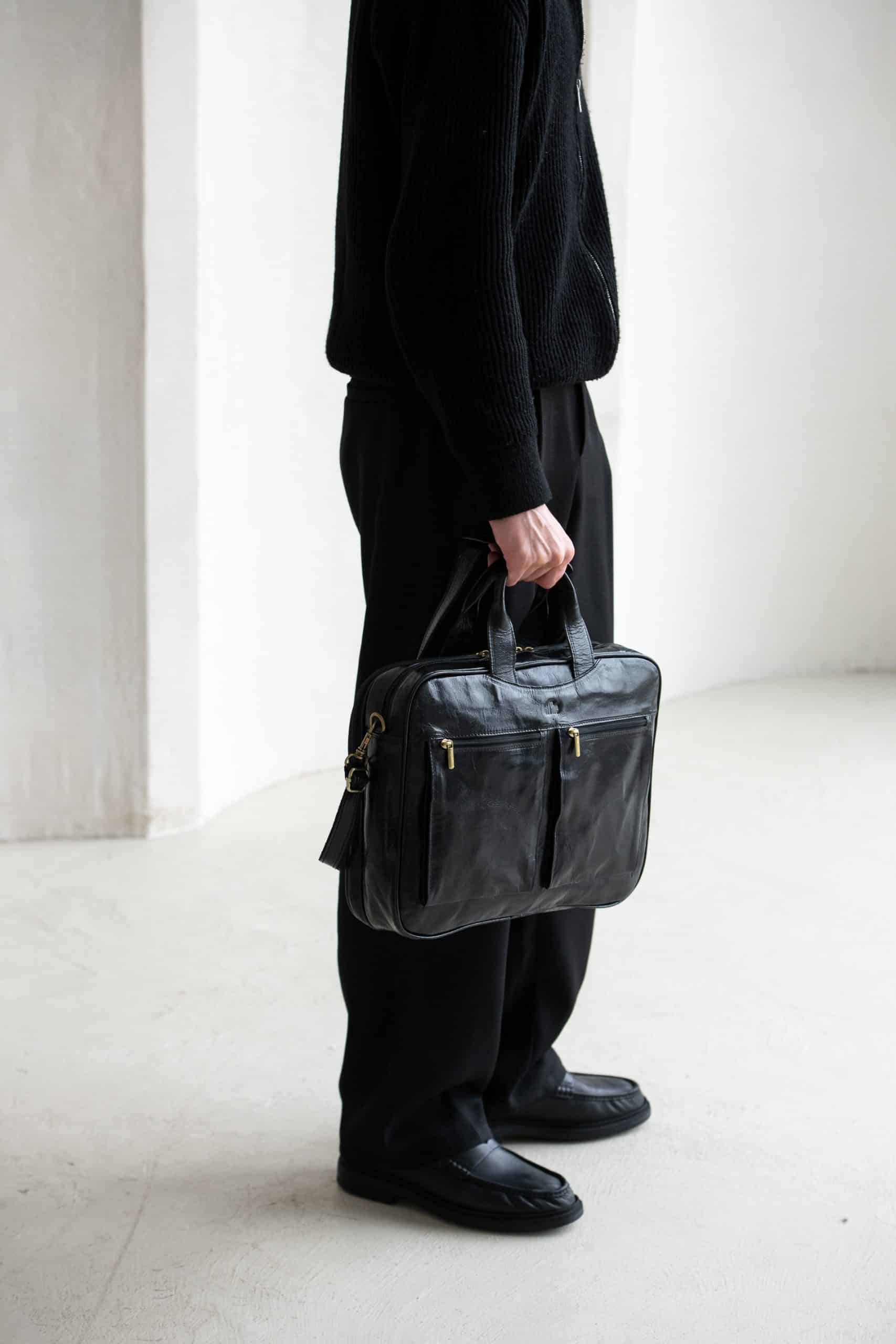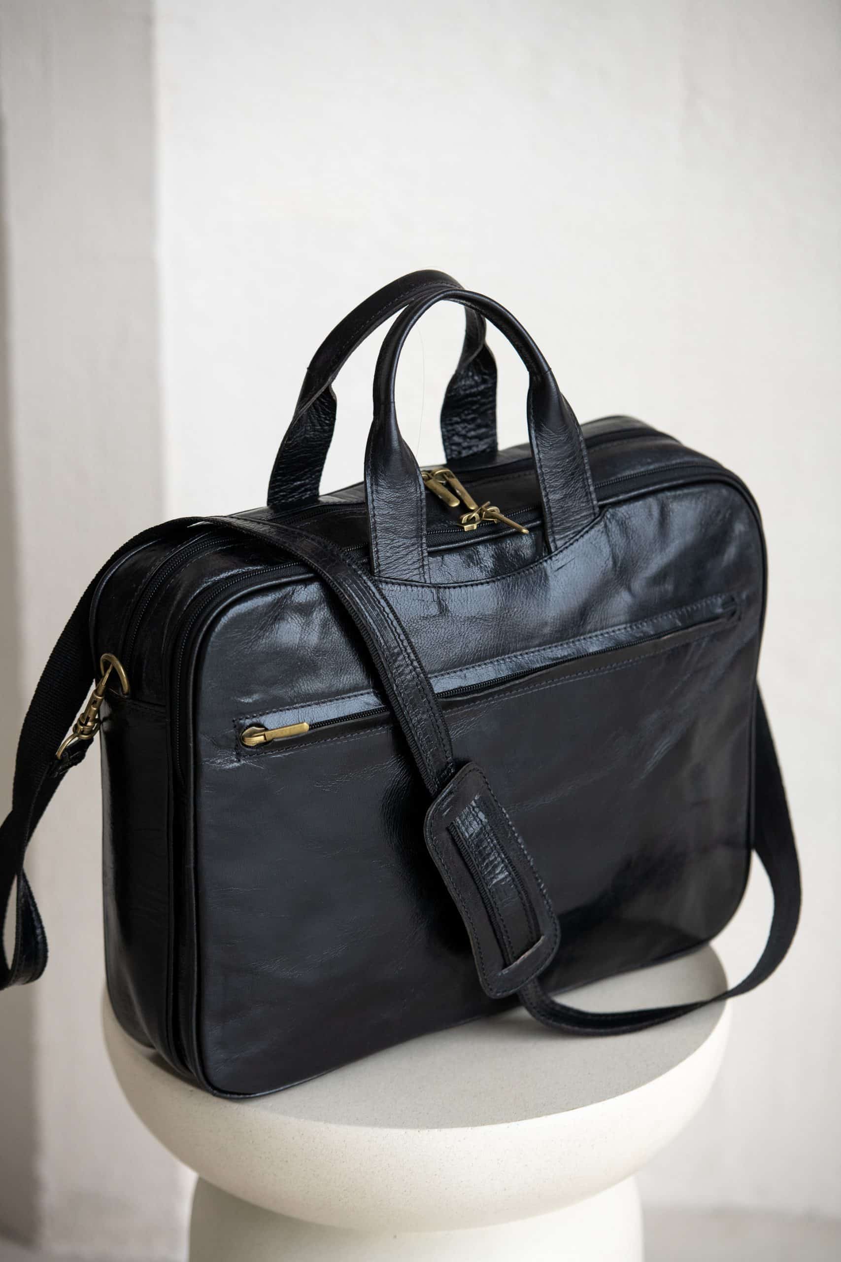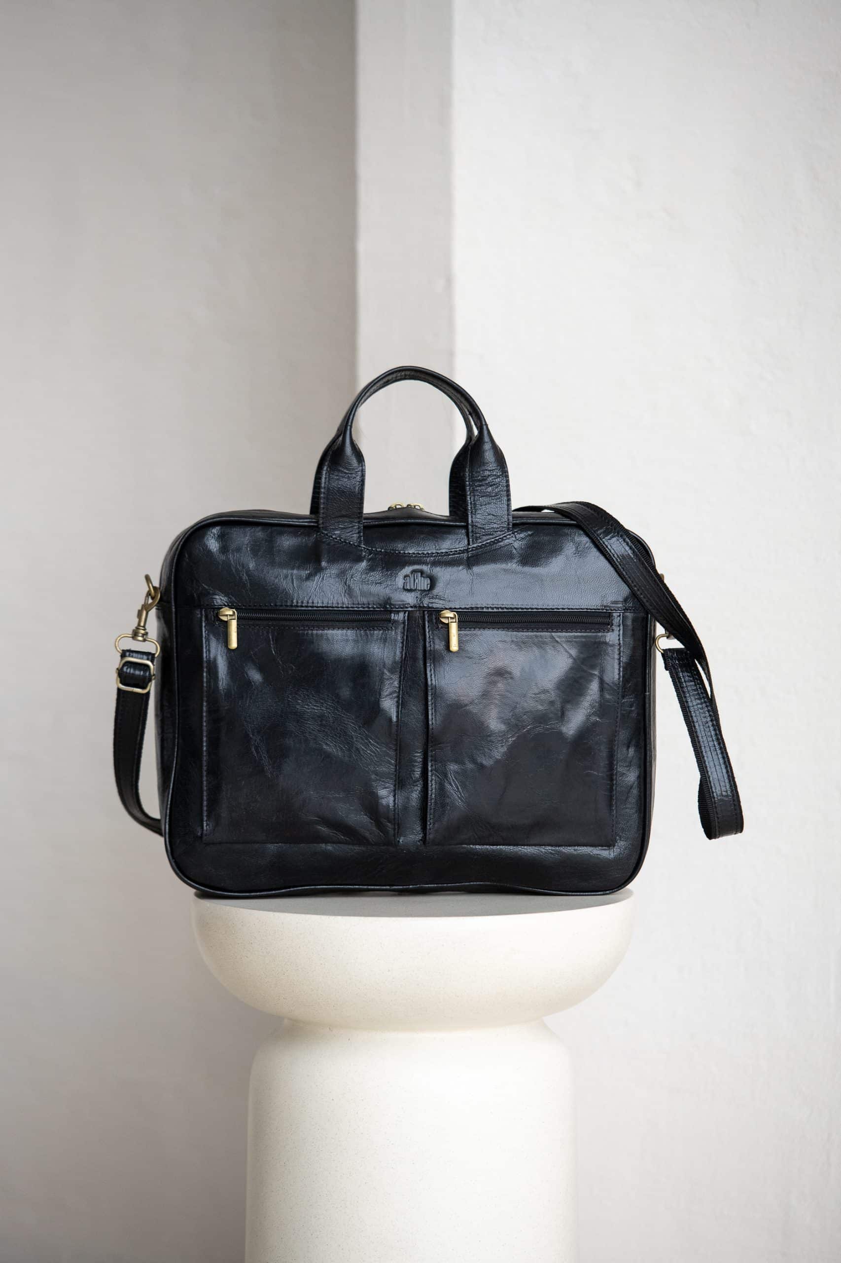 Leather Black Unisex Handbag aChe JAQUE N Handmade