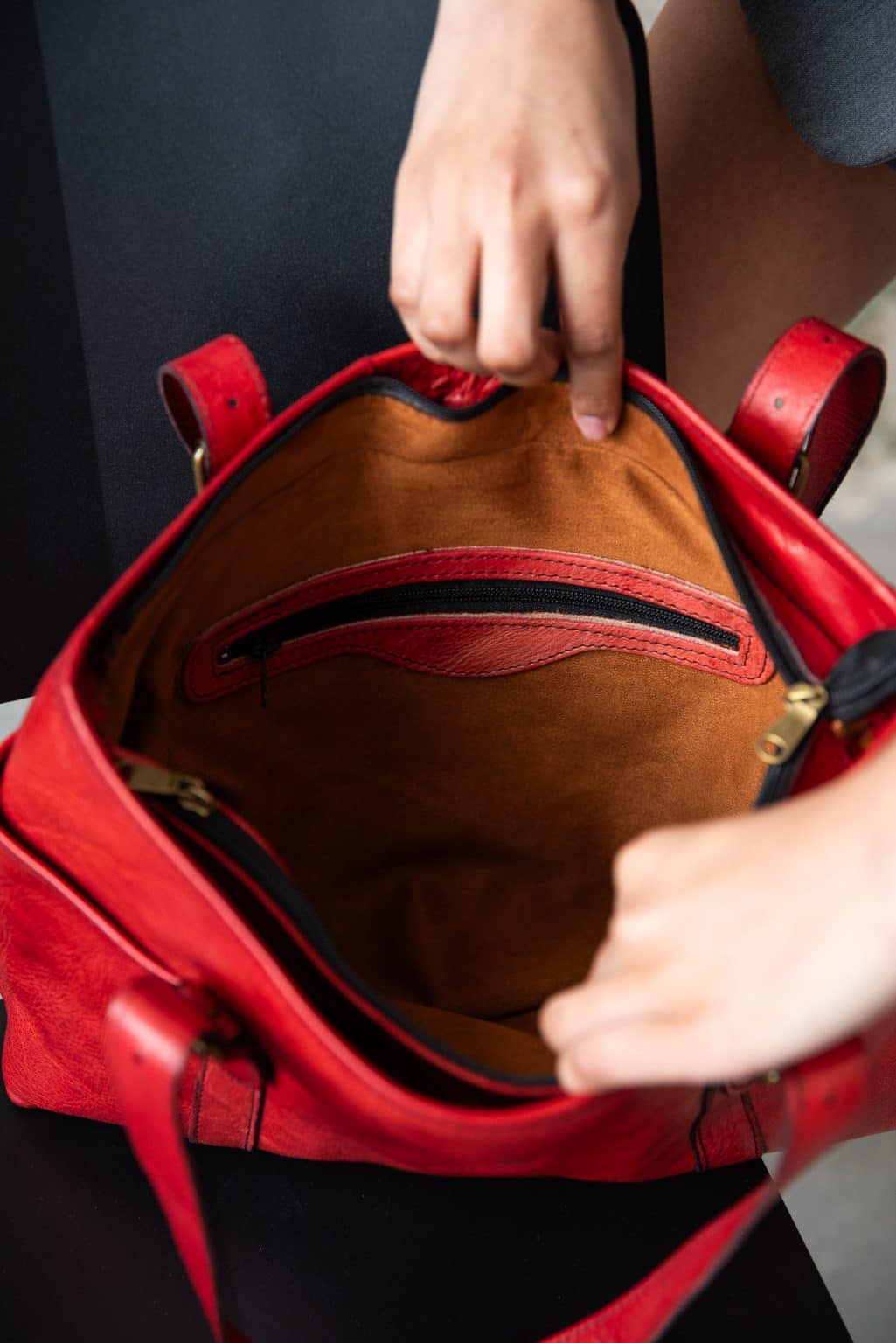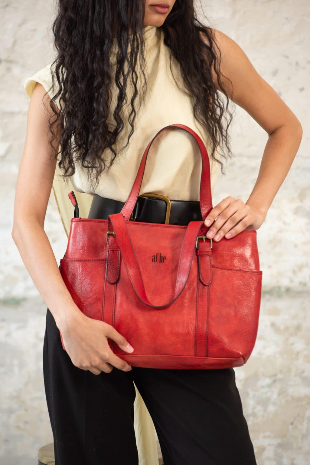 Шкіряна Жіноча Червона Сумка aChe BONUM R Ручної Роботи