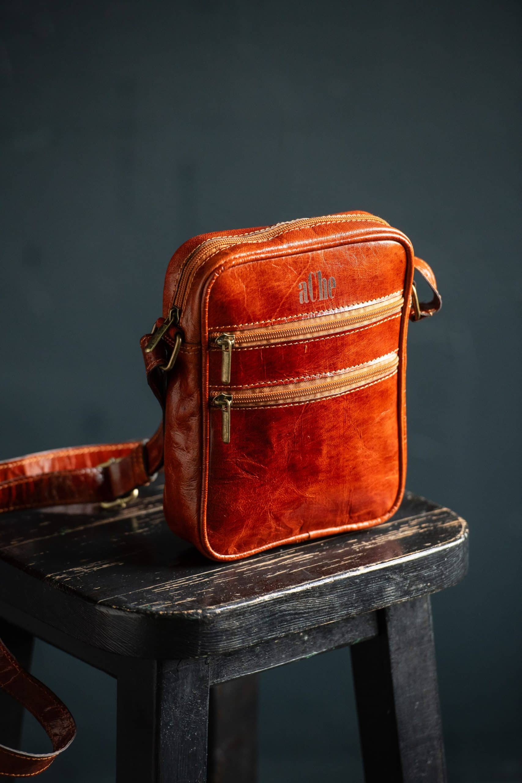 Шкіряна руда чоловіча сумка aChe MADURO C Ручної Роботи