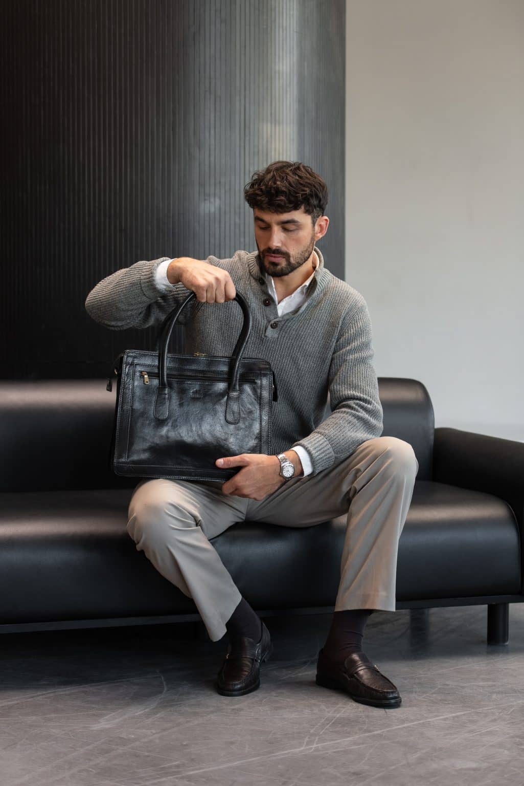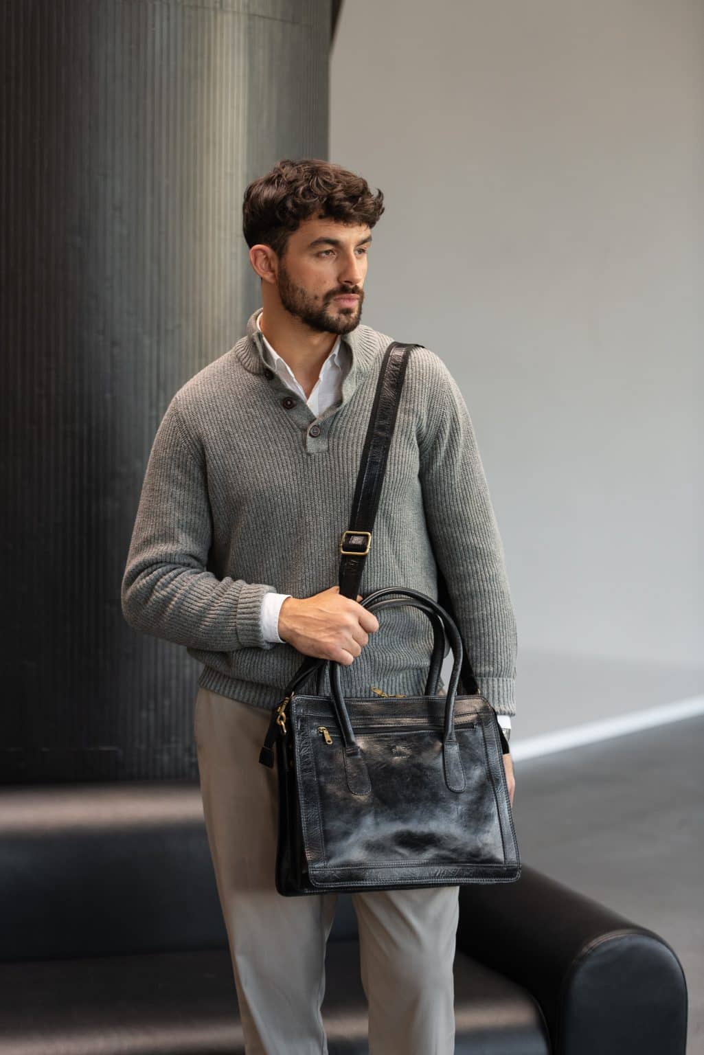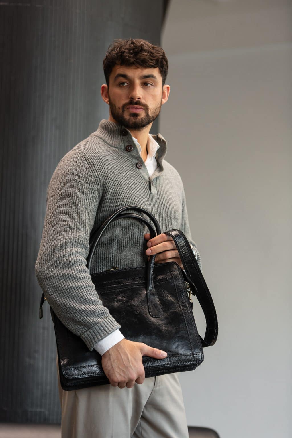 Шкіряна Чорна Чоловіча Сумка aChe BARBA N Ручної Роботи