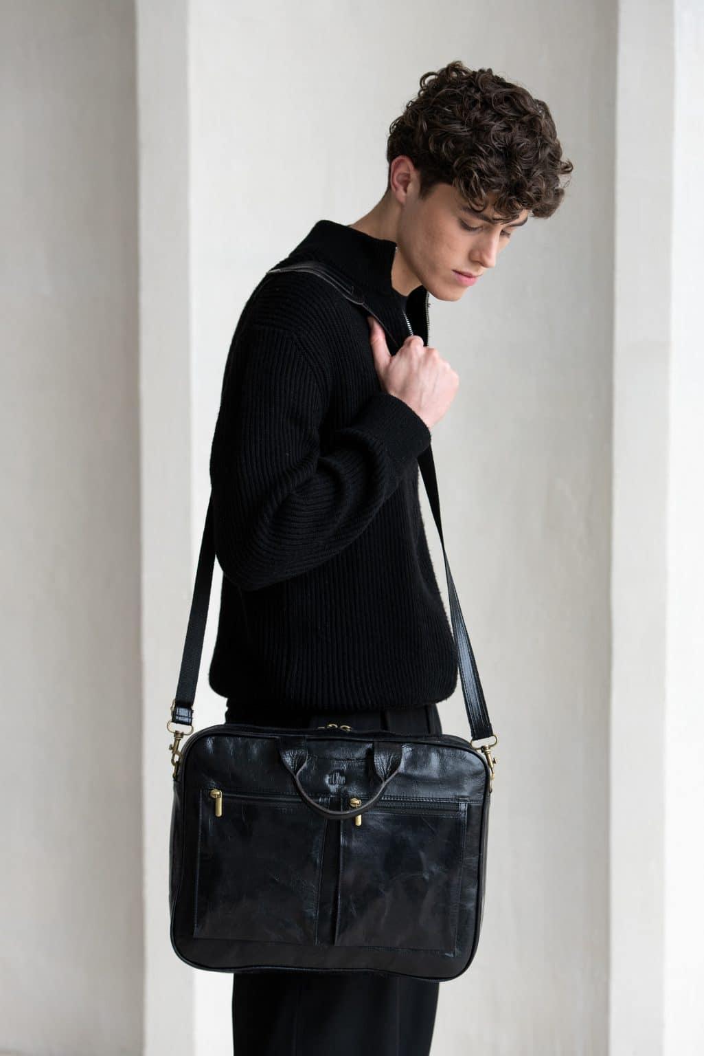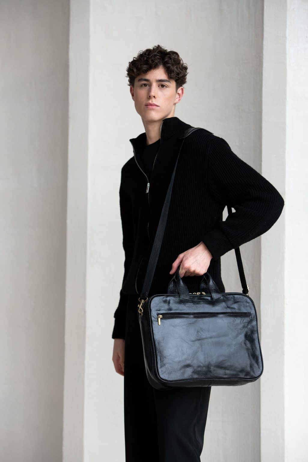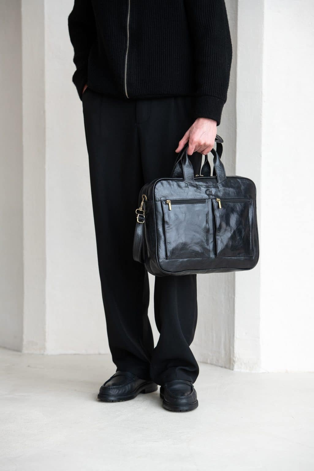 Шкіряна чорна чоловіча сумка aChe BREVIT N Ручної Роботи