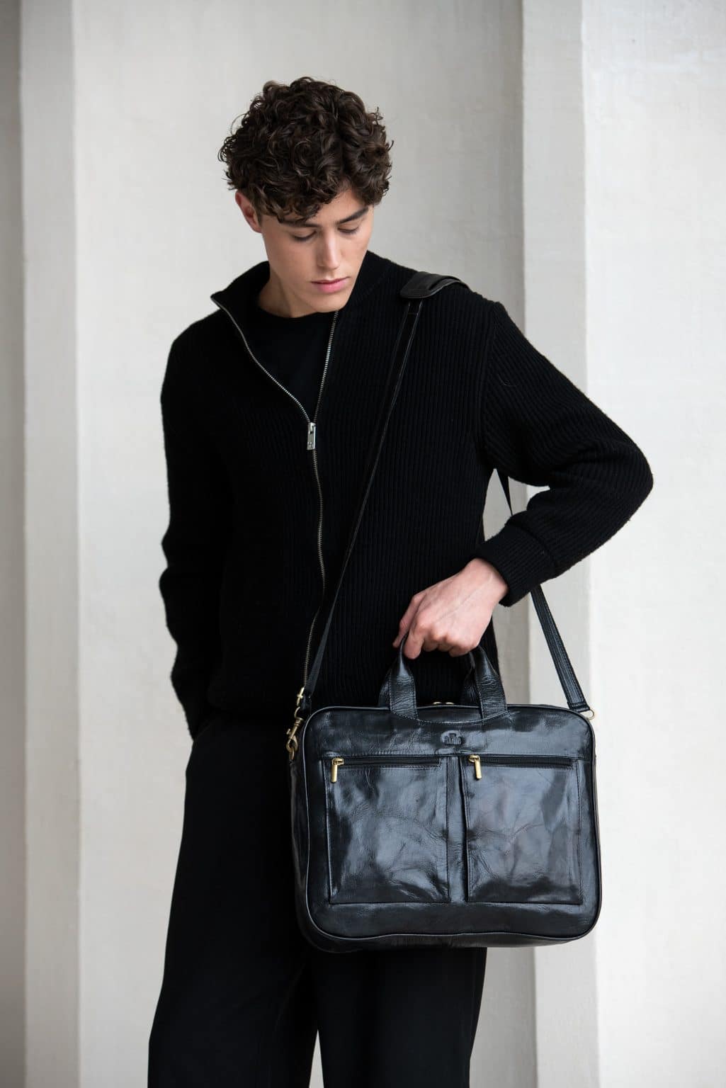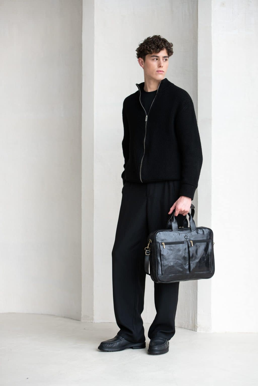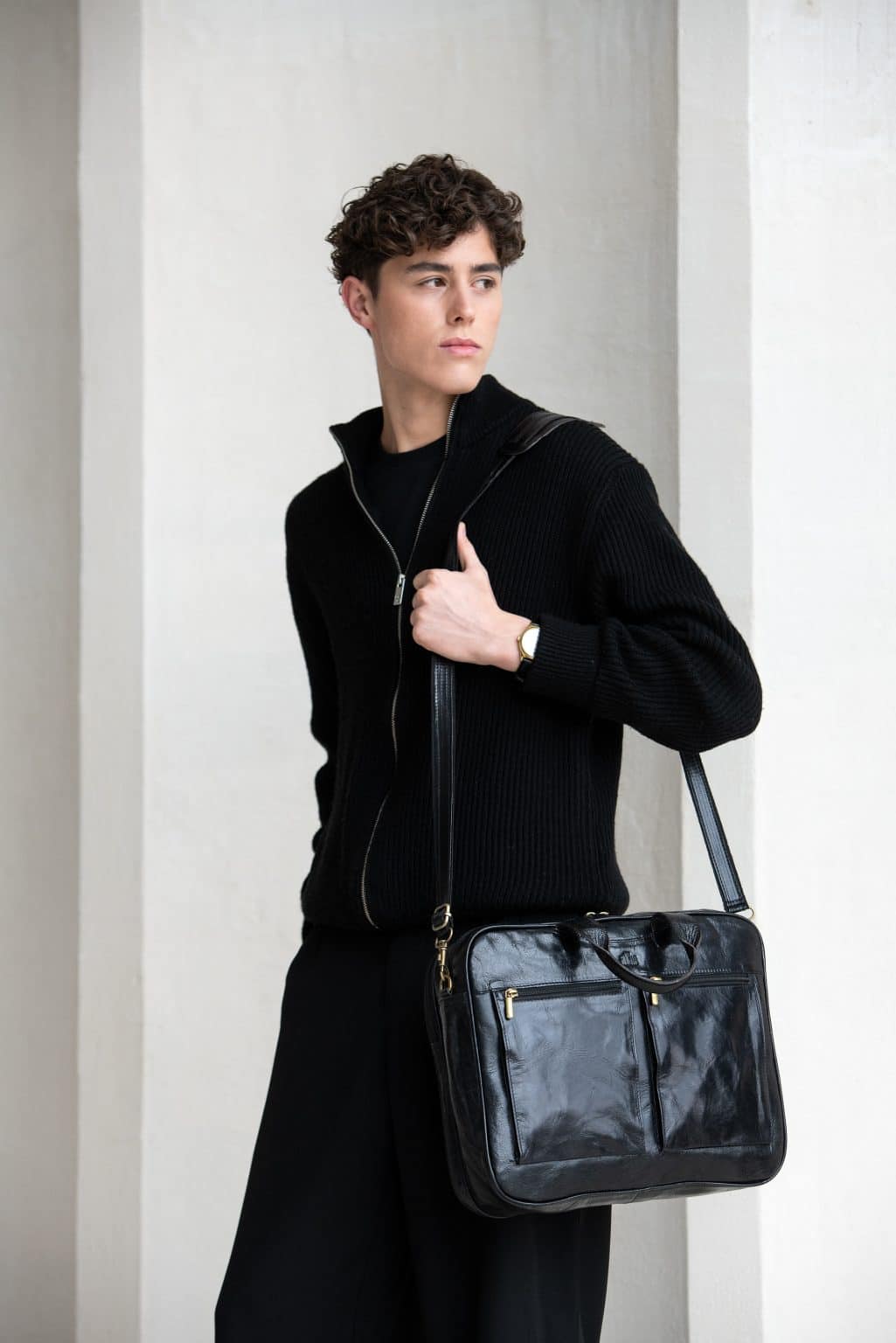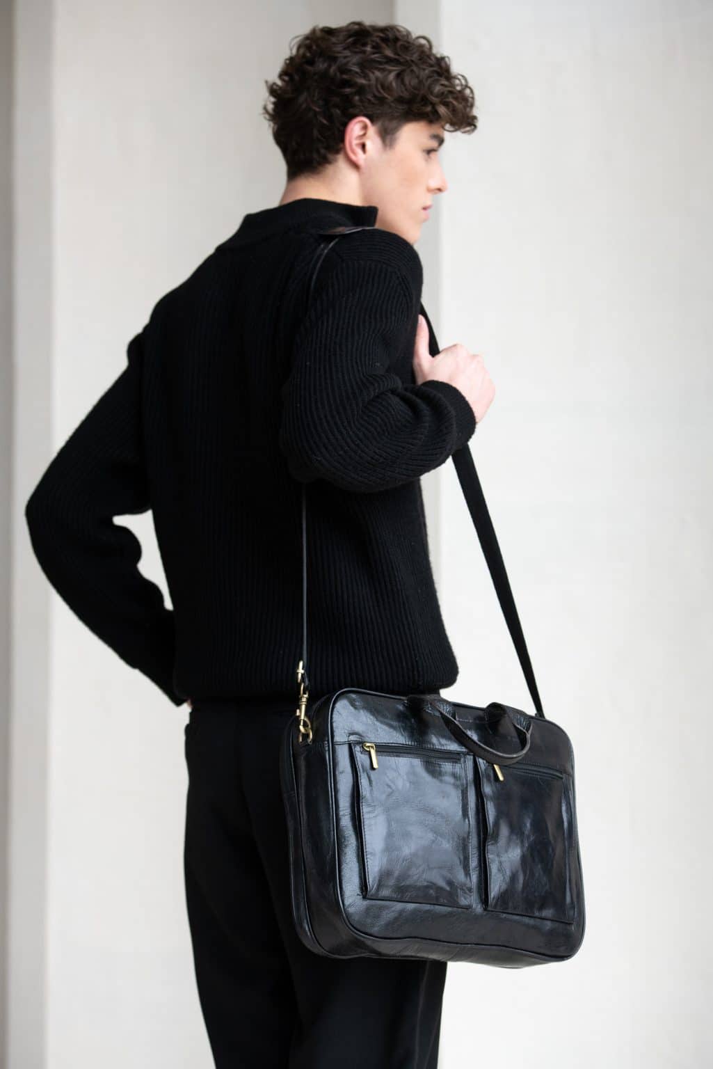 Шкіряна чорна чоловіча сумка aChe BREVIT N Ручної Роботи