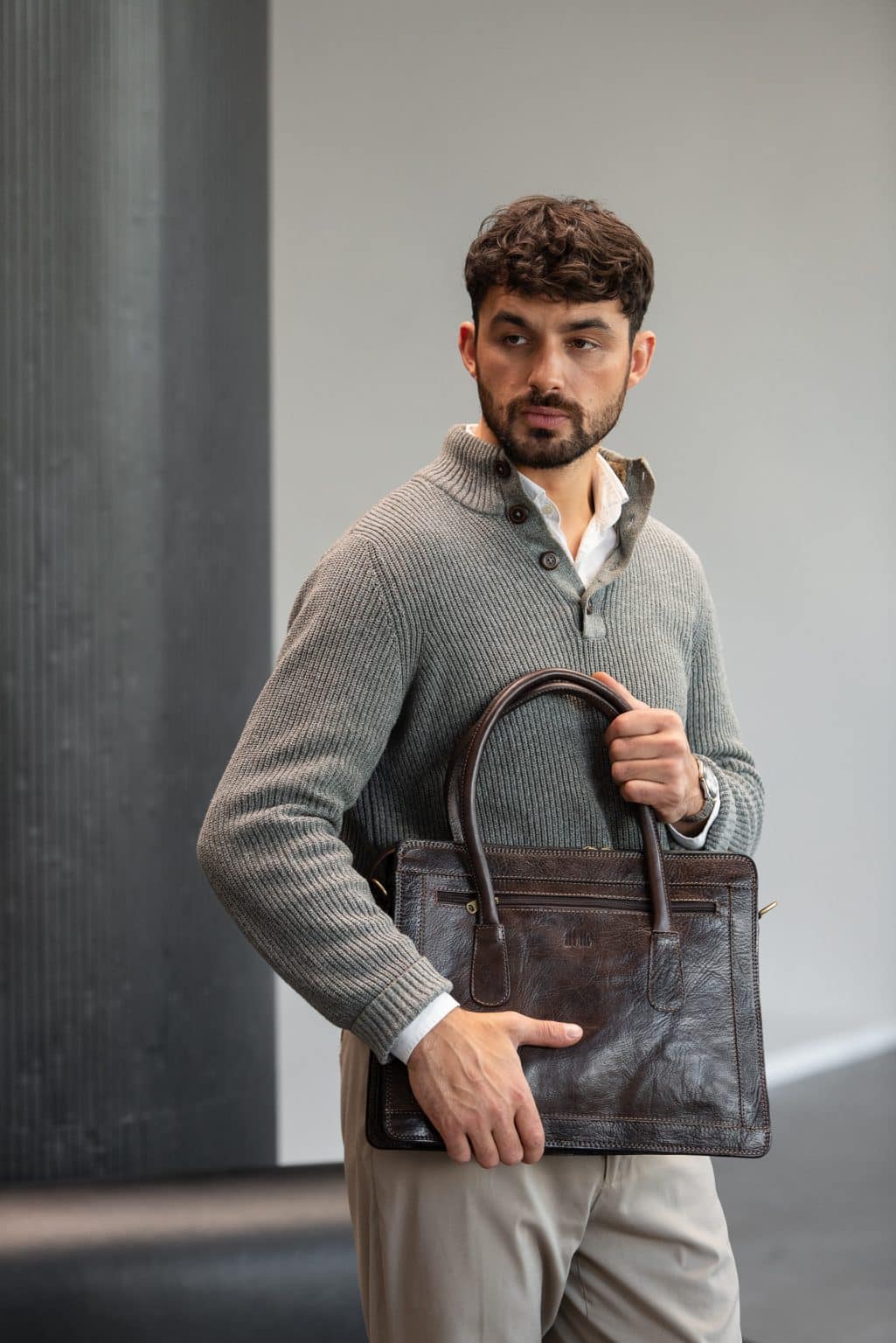 Шкіряна Коричнева Чоловіча Сумка aChe BARBA O Ручної Роботи
