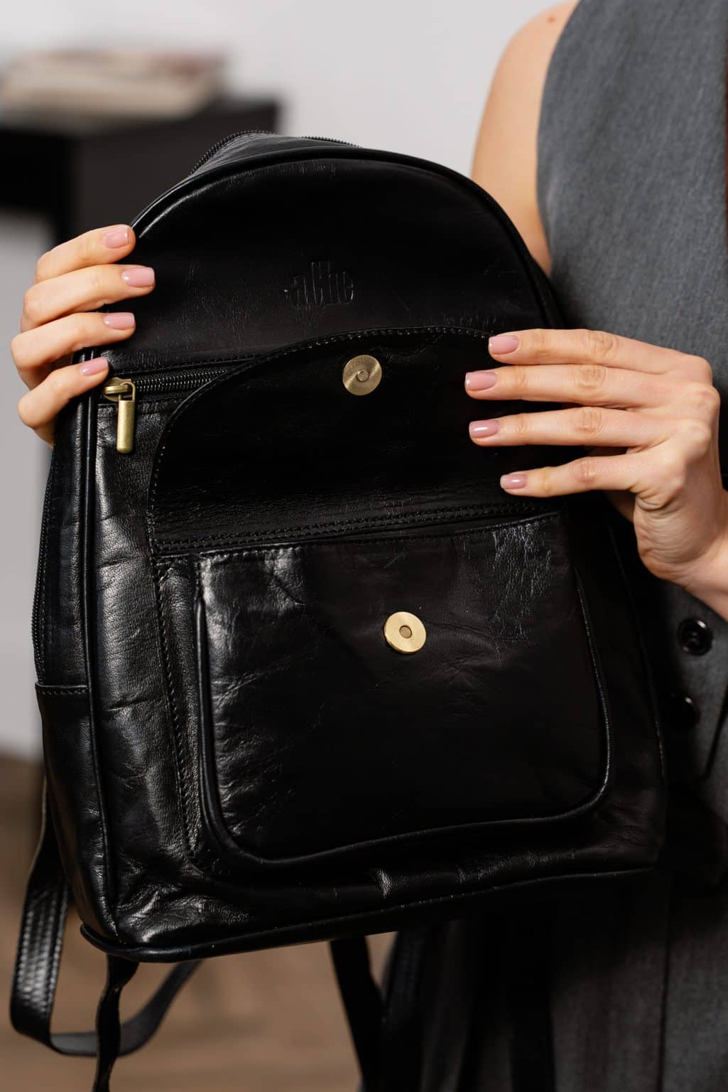 Шкіряний Жіночий Чорний Рюкзак aChe NASICA N Ручної Роботи